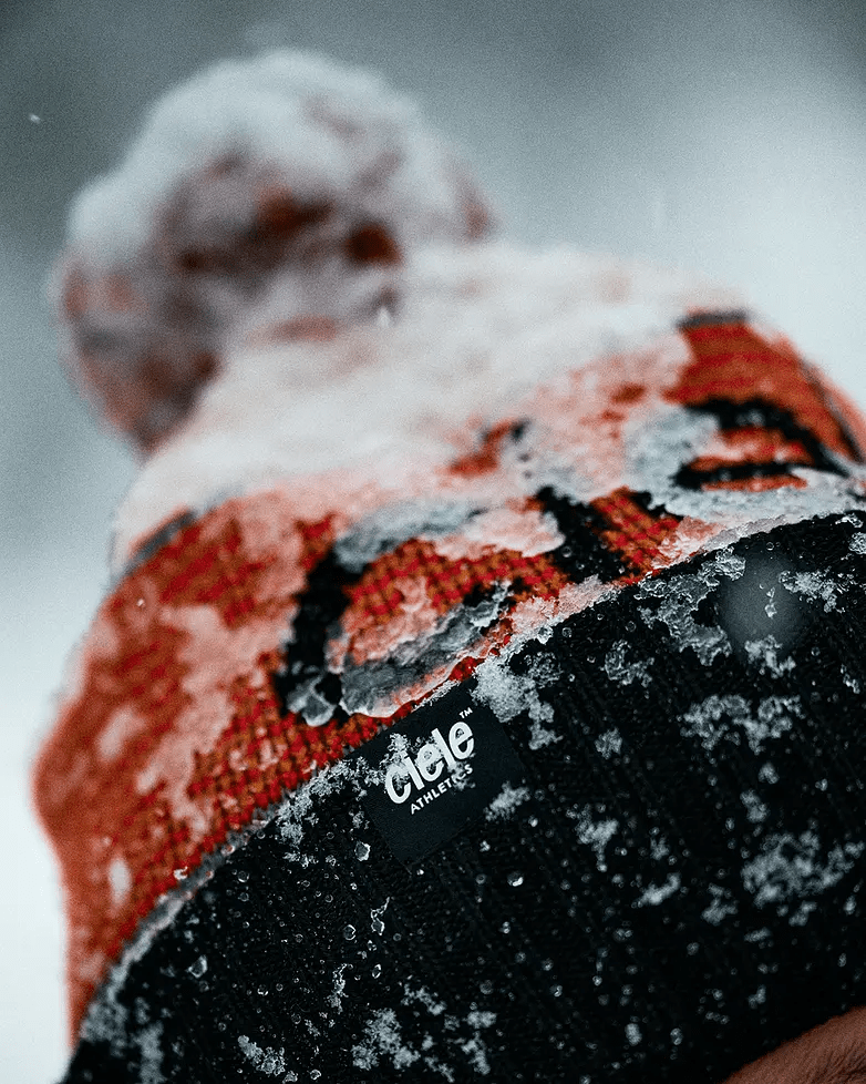 Recycled polyester with an old school look for those cold morning runs. The CLXCBeanie Accent – Edwards edition is made of a single layer of tight knit durable 100% recycled polyester, featuring reflective details for those who need it.