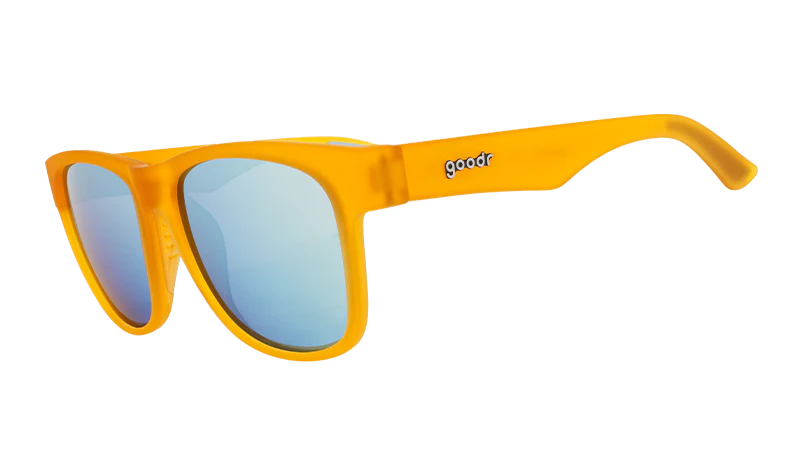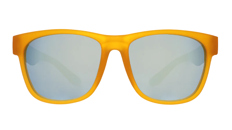Imagine our chagrin when we showed up to Sasquatch’s gold-digging party totally dolled and gussied, thinking we were going hunting for rich benefactors, only to find out he meant literally digging for gold. (Now that we think about it, it did seem kind of odd that he told us to meet him by the stream in the woods. UGH!!! There isn’t even bottle service out here!!!) At least these light orange BFG Gold Digging With Sasquatch frames fit our cryptid friend’s large noggin. And they’ll fit yours too. Au snap.