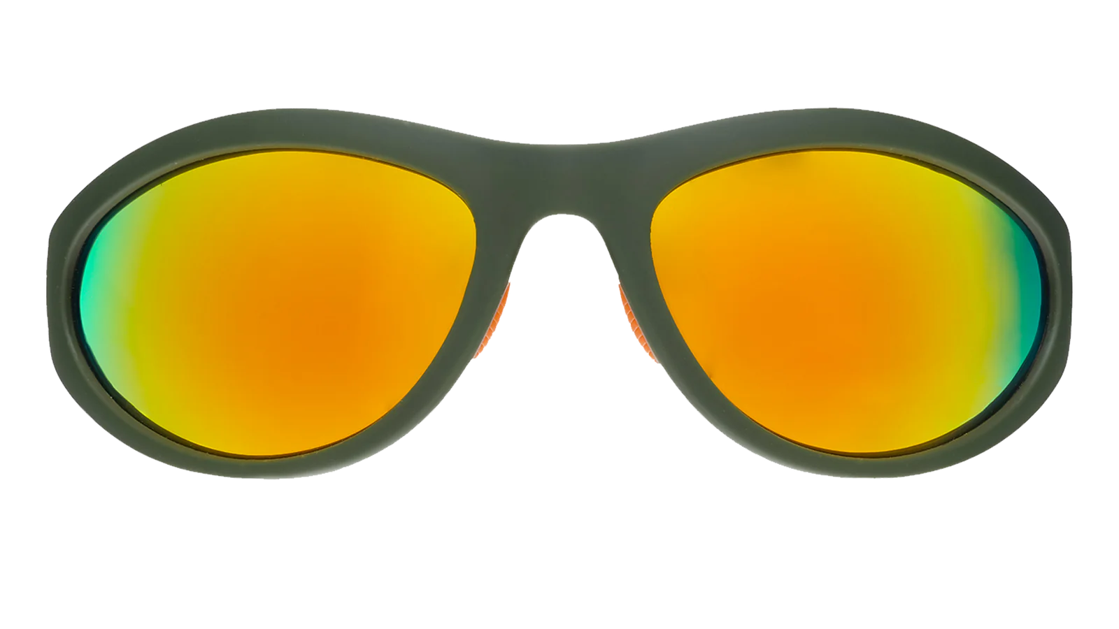 If you didn’t get grass stains on your pants, did you even play, bro?! These aerodynamic, green wrap-around sunglasses with amber reflective lenses won’t slip or bounce while you slide into home base (or the grass stain hall of fame).