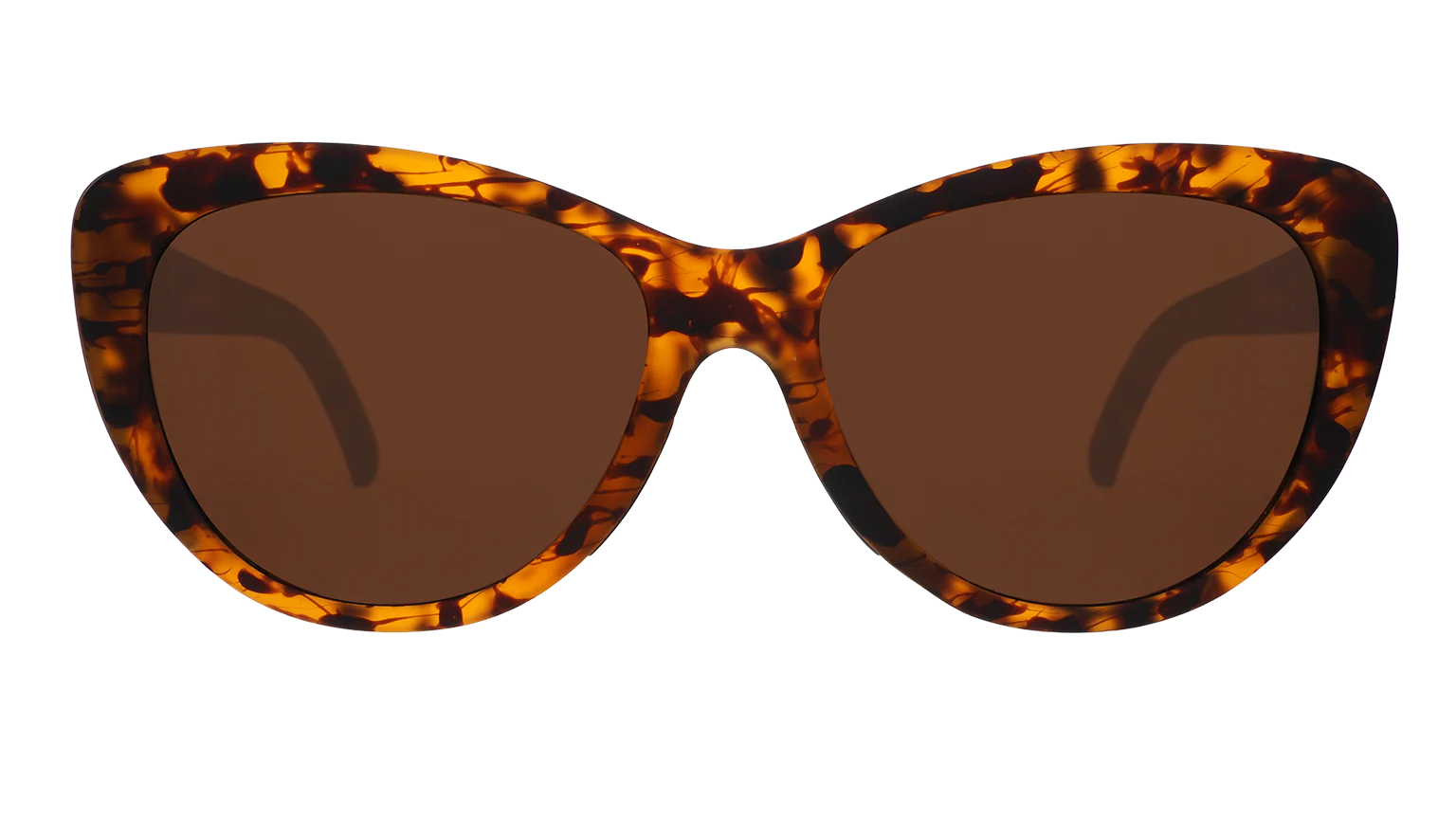 ME-OW!!! Take a walk on the wild side in these ferociously fashionable brown tortoiseshell sunglasses with brown non-reflective lenses and gold accents. WARNING: Wearing may result in an uptick of runway catfights due to extreme style envy.