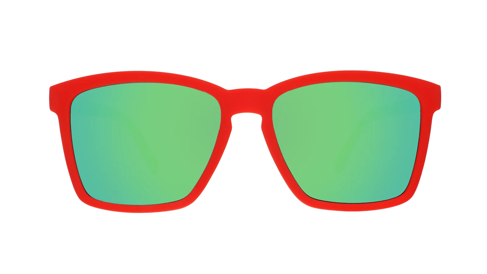 Spice up your style with hot sauce sunglasses! These red frames feature green reflective polarised lenses & sizzling custom packaging. Part of our limited-edition Carl’s Diner line celebrating comfort food. As the saying goes: always wear condiments.