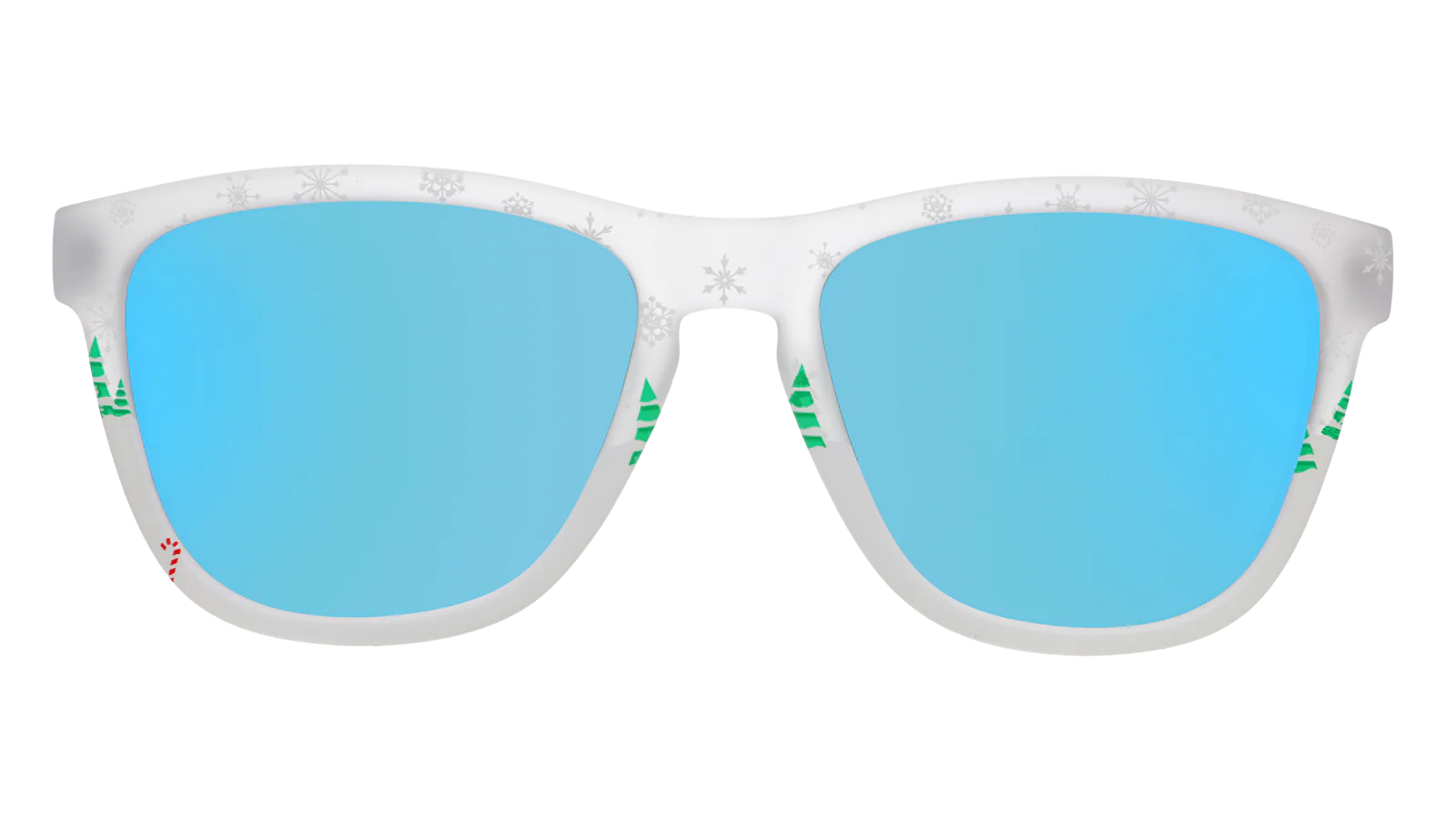 Best Christmas present? Snow globe sunglasses! Surprise your friends & family with limited-edition clear frames featuring blue reflective polarised lenses.