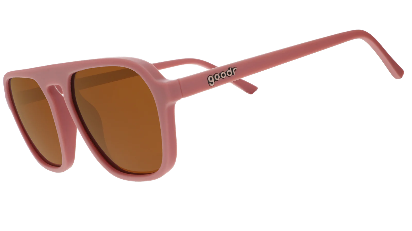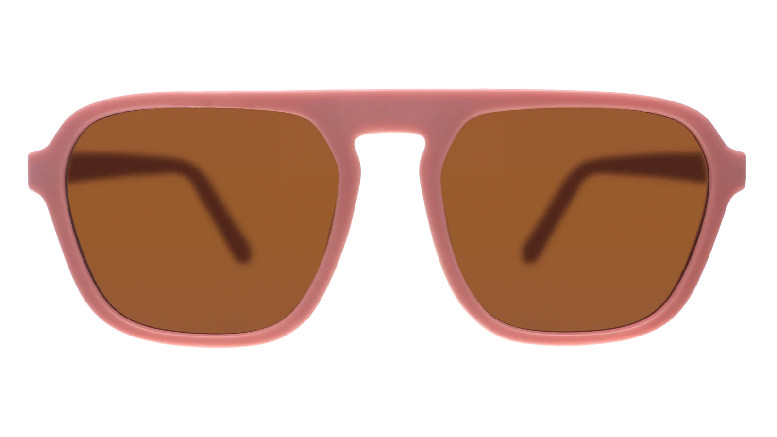 Threaten everyone with a good time with these light pink vintage-inspired square aviator frames with brown, non-reflective lenses. Won’t slip or bounce while you hustle at the roller rink like it’s 1979. It’s like everything is new again.