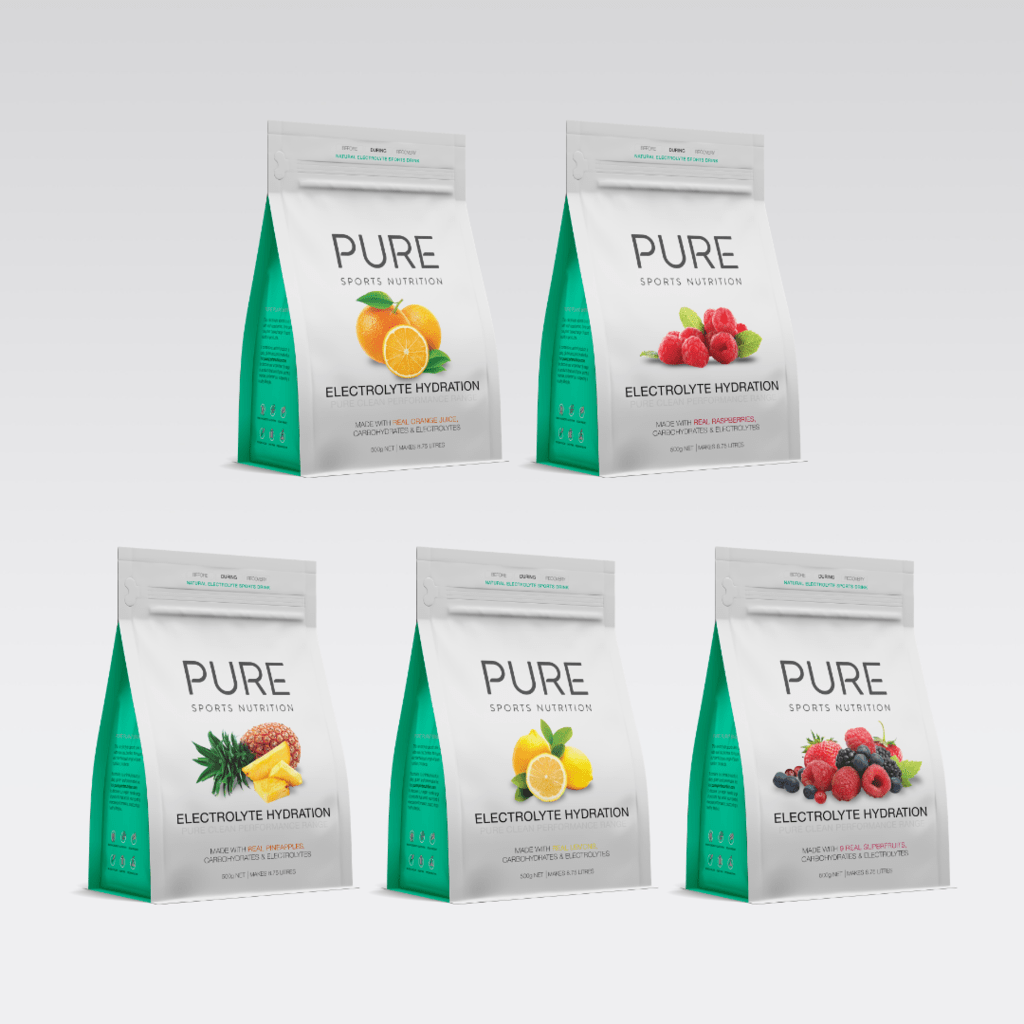 PURE Electrolyte Hydration is a natural electrolyte drink base made using real freeze dried fruit, carbohydrates and electrolytes. Scientifically formulated it is perfect for use during exercise.