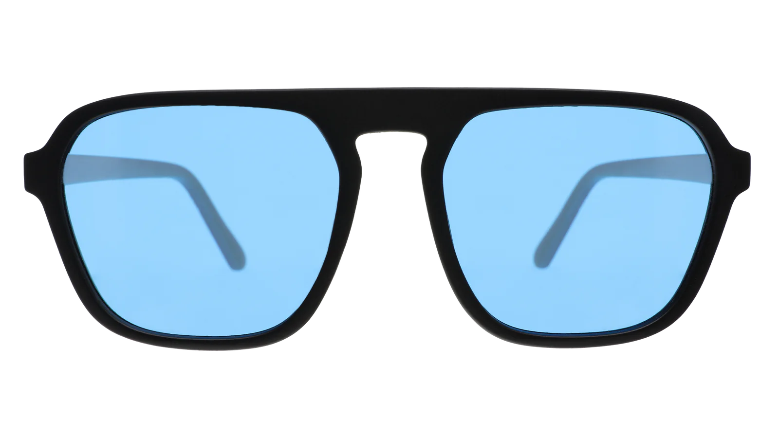 These black square aviators, with their blue non-reflective lenses & retro vibes, will have you nonchalantly sauntering around with the ‘tude of a stray hepcat. No one’ll be the wiser that you spend your days jumping out of windows & dodging flames.